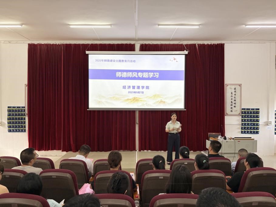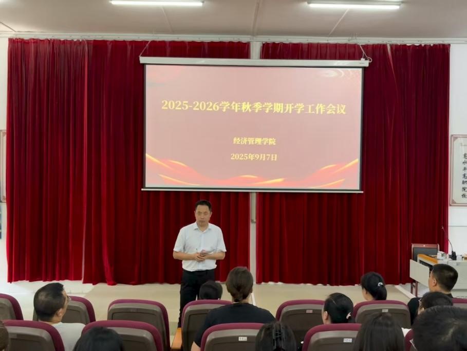 为统筹部署新学期重点工作、纵深强化师德师风建设,确保各项工作起步稳、开局优,9月7日下午,经济管理学院在浈江校区第一教学楼104教室召开2025-2026学年秋季学期开学工作会议暨师德师风专题学习会议。学院党总支书记陈斌珠等班子成员及全体教师参会,院长刘春朝主持会议。