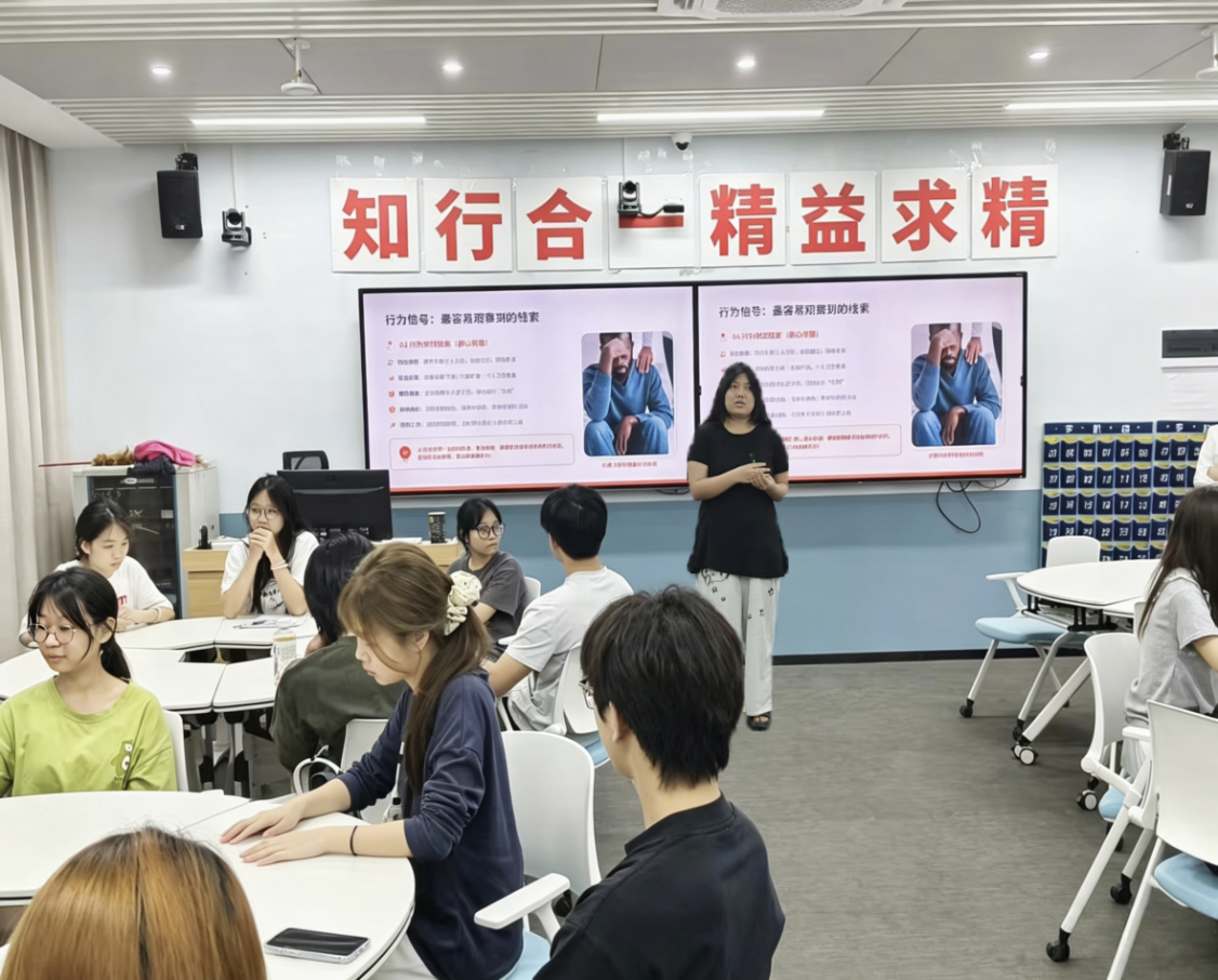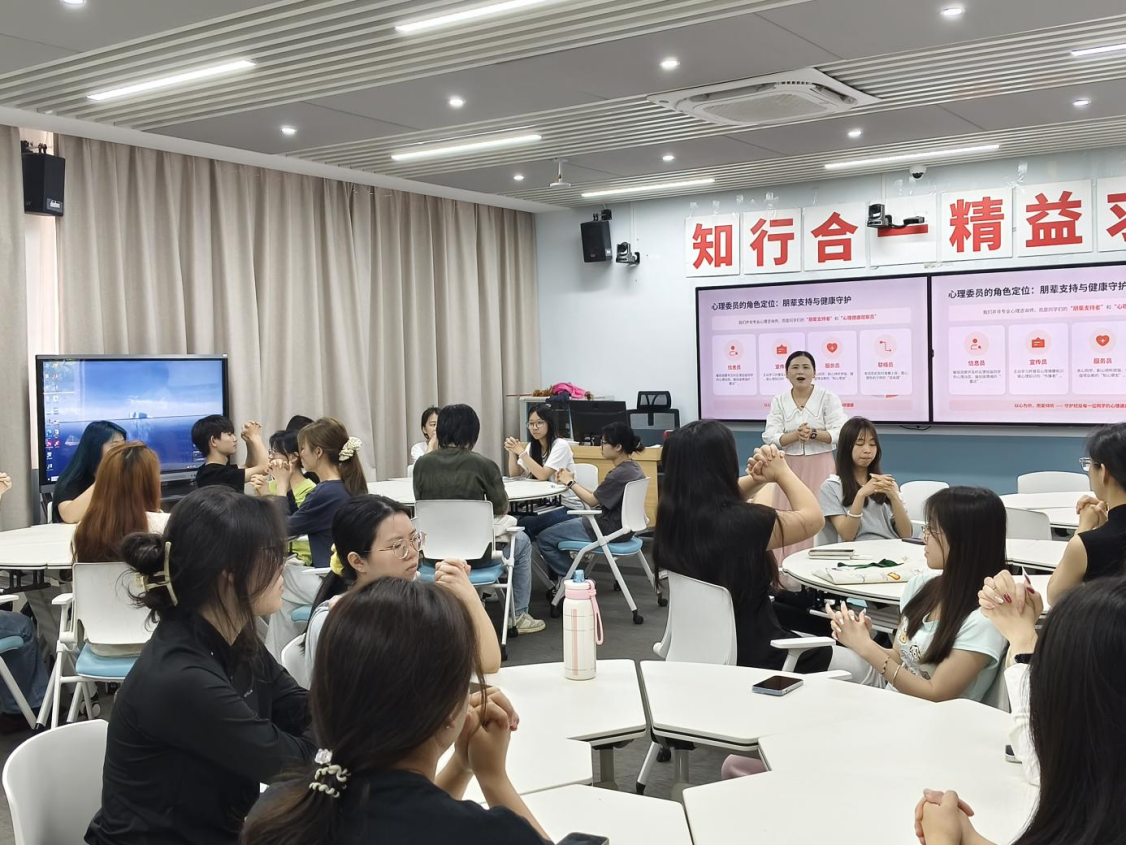 为进一步强化心理健康教育工作实效,切实提升班级心理委员的专业素养与履职能力,充分发挥朋辈互助在校园心理防护体系中的重要作用,筑牢校园心理安全防线,4月9日下午,经济管理学院心理工作站在浈一教403教室开展班级心理委员专项培训活动。本次培训由辅导员杨丽老师主讲,学院全体班级心理委员参加培训。