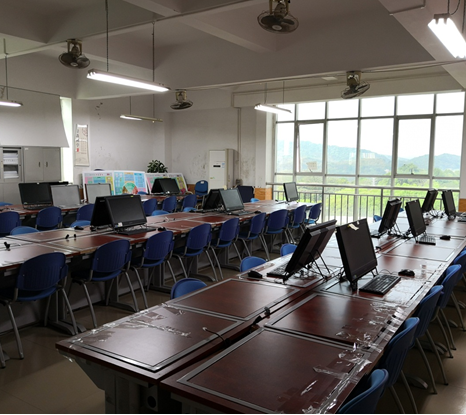 一体化电脑19台、多媒体设备1套、投影机1台、电动幕布1套、桌椅60套,营销沙盘软件等。