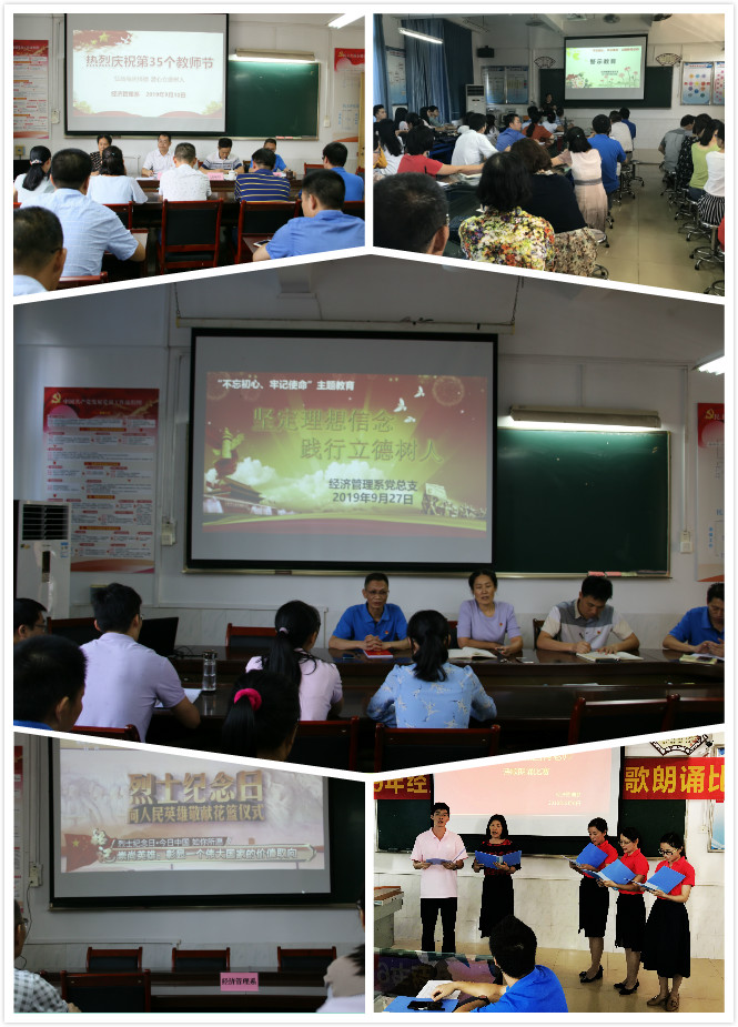 9月6日下午,为庆祝新中国七十华诞以及迎接第三十五个教师节的到来,经济管理系分工会在宽B403教室举办了以“立德树人,做‘四有’老师”为主题的教职工诗歌朗诵比赛。经济管理系7个专业教研室精心选材,以朗诵为媒,...